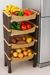 Етажерка Violet House Еко Coffee виготовлена з міцного поліпропілену, має чотири просторі яруси та зручний розмір 66х41х29,5 см. Використовую її на кухні для зберігання фруктів та овочів — завдяки плетеній структурі вони добре вентилюються й довше залишаються свіжими. Конструкція легка, але стійка, зручно пересувати і ставити навіть у невеликих приміщеннях. Стильний бежево-коричневий дизайн гармонійно виглядає в інтер’єрі кухні.