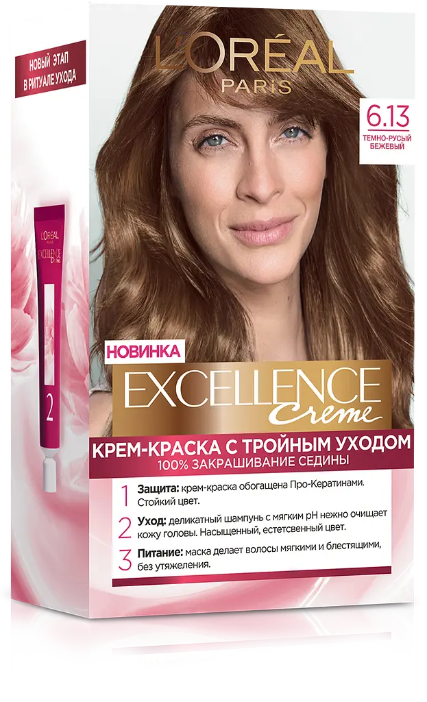 Краска для волос L’Oréal Paris (Лореаль Париж) Excellence Creme содержит уникальный комплекс активных ингредиентов, обеспечивает уход волосам во время и после окрашивания.