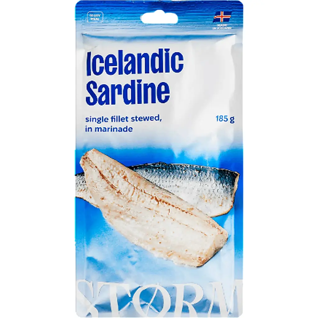 Філе ісландської сардини Storm томлене в маринаді 185 г має ніжну текстуру та приємний рибний смак без різкого запаху. Зручне як готова закуска або для бутербродів. Добре поєднується з хлібом і овочами, поживний та корисний продукт.