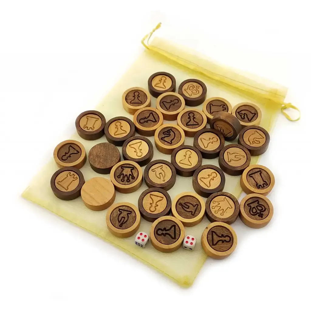 Фишки для нард, с изображением шахматных фигур, шашки с мешочком для хранения, массив дерева, 32 шт. в наборе, покрыты паркетным маслом, отлично подходят для игр 3 в 1.