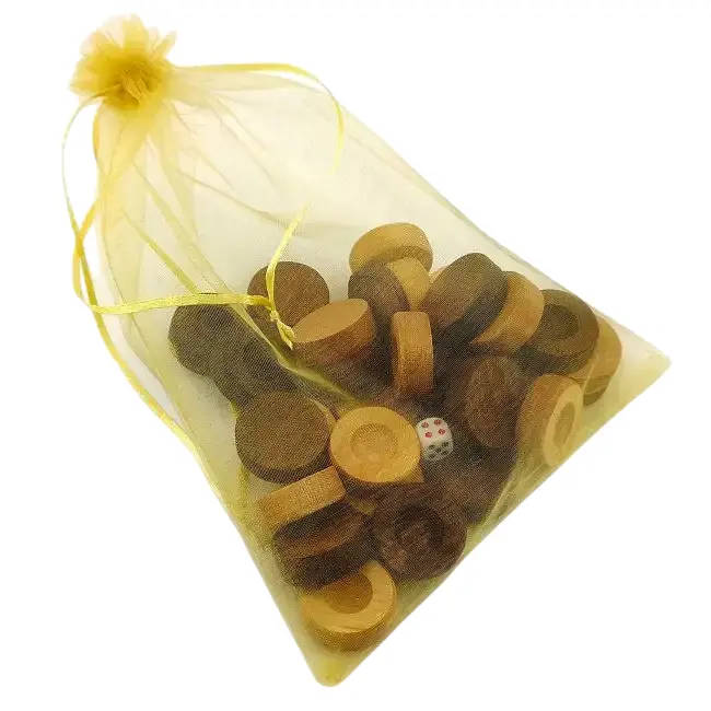 Фишки для нард с мешочком кубики в комплекте, цвет натуральное дерево и коричневые.