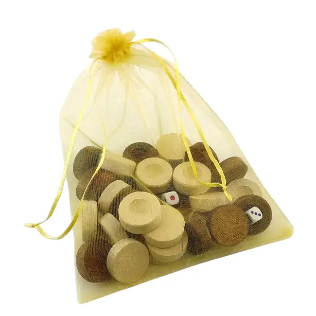 Фишки для нард с мешочком массив дерева, кубики в комплекте, белые и коричневые.