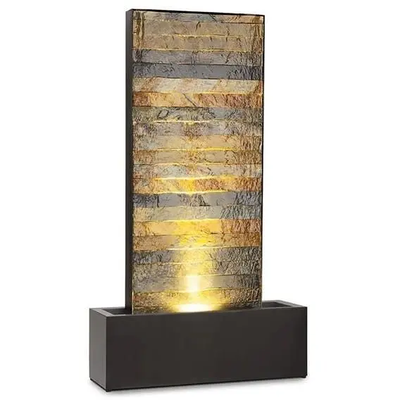 Атмосферно освещенная двенадцатью светодиодами вода стекает по вертикальной поверхности постоянным потоком, обеспечивая таким образом медитативную релаксацию. Фонтан Raincastle не только чрезвычайно прочен и долговечен, изготовлен из оцинкованного металла, но также имеет обманчивый вид настоящего кирпича. Чтобы вода никогда не иссякла, ее постоянную циркуляцию поддерживает насос мощностью 8 Вт. Благодаря сверхдлинному кабелю питания длиной 10 м садовый фонтан можно свободно разместить, и он найдет идеальное место в любом месте.