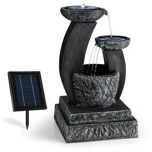 Садовый фонтан Blumfeldt Fantaghiro придает садам, террасам или дворам сказочность. Садовый фонтан крепко изготовлен из полирезина с видом гранитного камня. Вода течет освежающими каскадами по трем изогнутым этажам и завораживает чувства. Небольшой, но мощный насос обеспечивает постоянный поток воды с циркуляцией 250 литров воды в час, воду не нужно доливать. Небольшое светодиодное кольцо обеспечивает ночное освещение, благодаря чему вода на самом высоком уровне сверкает. Но производительность фонтана далеко не исчерпана: электроэнергия поступает не от розетки, а от солнечной панели мощностью 3 Вт, которая экологически чиста и безопасна для кошелька, и ее можно свободно расположить в лучших солнечных местах благодаря длинному кабелю питания и 30 см длиной земляной колос. В дополнение к работе насоса, он также заряжает встроенную литий-батарею 7,4 В/2000 мАч, чтобы нежный лепет мог наполнить ночь.