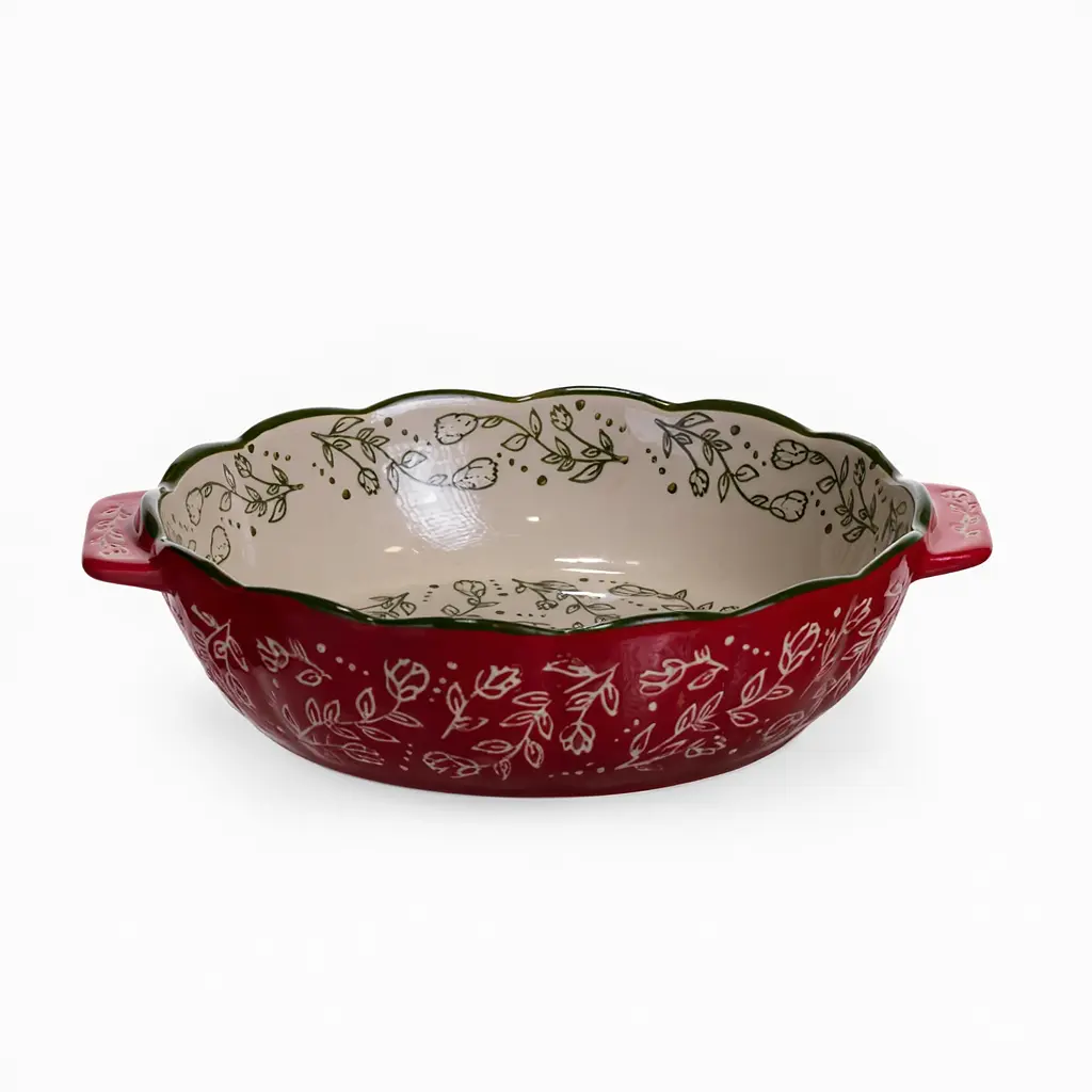 Фарфоровая форма для запекания предназначена для тех, кто ценит удобство и красоту на кухне. Ее стильное оформление с насыщенным красным цветом и нежным растительным орнаментом делает подачу особенно эффектной.