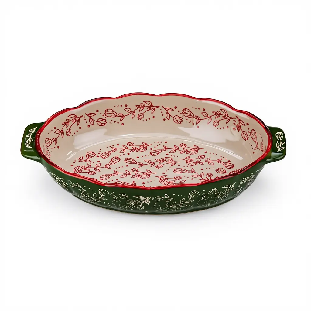 Фарфоровая форма для запекания предназначена для тех, кто ценит удобство и красоту на кухне. Ее стильное оформление с нежным растительным орнаментом делает подачу блюд особенно эффектной.