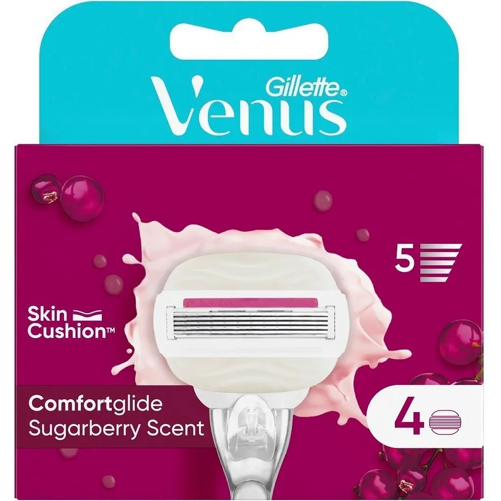 Сменные кассеты для бритья Venus Sugarberry подарят вашей коже чувство комфорта с женской бритвой Comfort Glide из Olay. Подвижные увлажняющие подушечки содержат легкие масла для тела, благодаря которым бритва плавно скользит по коже.