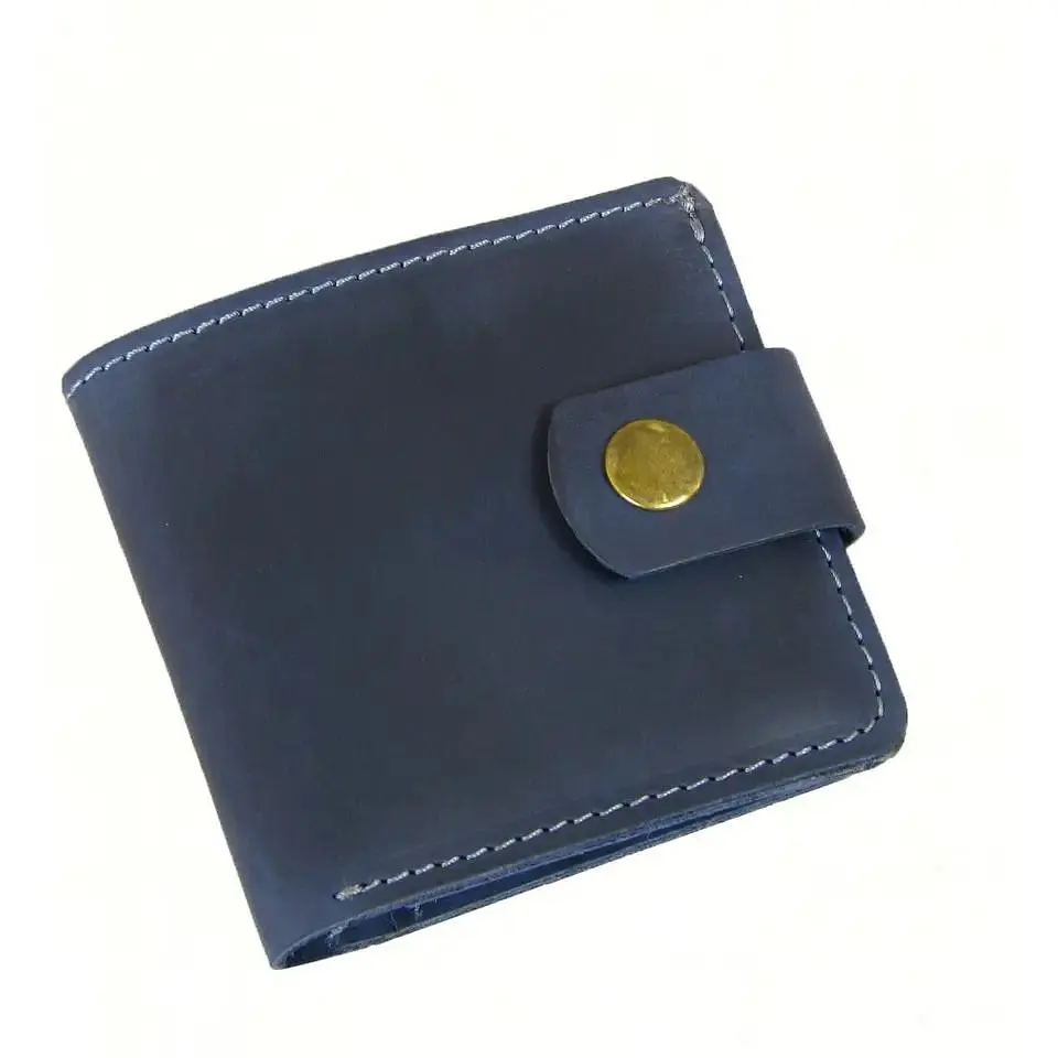Компактный, удобный женский кошелек, кошелек синего цвета. Кошелек сшит из модной, вощеной, телячьей кожи Crazy Horse. Небольшие размеры кошелька (9,5х10см) позволяют положить его в любую сумку. Несмотря на компактность, кошелек очень вместительный. В нем содержится до 10 карт и банкноты всех номиналов. Снаружи, на задней части, удобная монетница на кнопке.