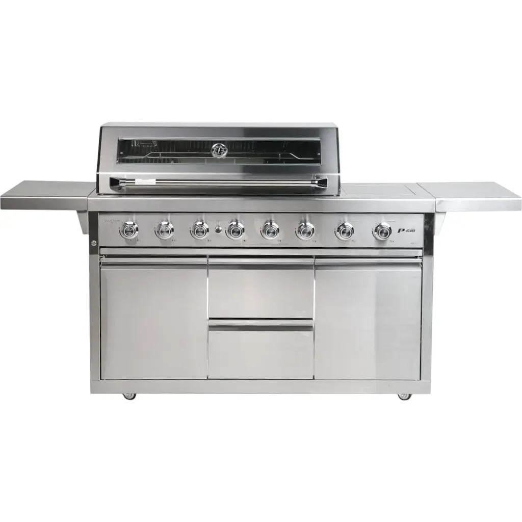 Многолетний опыт и высокий уровень технических ноу-хау были воплощены в дизайне нового флагмана от Santos Grills. Santos P-618 из нержавеющей стали не только поражает своим функциональным и стильным дизайном, но и техническими характеристиками: 6 основных горелок с отсекателями жара из нержавеющей стали обеспечивают постоянный нагрев, а благодаря основной зоне гриля шириной почти 1 м, состоящий из 2-х массивных нержавеющих решеток и одной чугунной планчи можно приготовить для большого количества гостей одновременно. Кроме того, Santos P-618 имеет инфракрасную горелку для вертела и боковую инфракрасную горелку с температурой нагрева до 800°C для очень быстрого запечатывания мяса. С большим смотровым окном и встроенной внутренней подсветкой вы всегда можете следить за приготовлением от начала и до конца.
