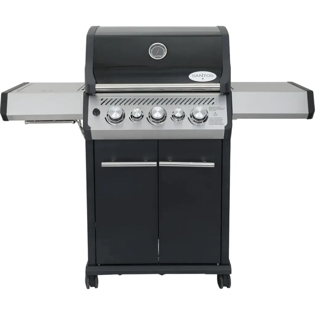 Santos S-318 Black - это небольших размеров газовый гриль на 3 основных горелок, выполненный в черном цвете со вставками из нержавеющей стали. Имеет довольно внушительных размеров рабочую поверхность для приготовления и богатую комплектацию. Гриль комплектуется керамической инфракрасной горелкой и задней горелкой под вертель, что встречается довольно редко в грилях такого класса. Благодаря продуманной конструкции гриля, вы легко приготовите на 4-5 человек - от сочных стейков, овощей и рыбы до основных блюд в чугунной посуде. Газовый баллон и все необходимые аксессуары легко разместятся в тумбе гриля, не создавая беспорядка в гриль-зоне.