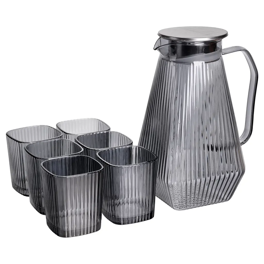 Элегантный набор для напитков содержит графин и шесть стаканов, изготовленных из крепкого рифленого стекла в благородном янтарном оттенке. Идеально подходит для подачи воды, сока, лимонада или холодного чая.