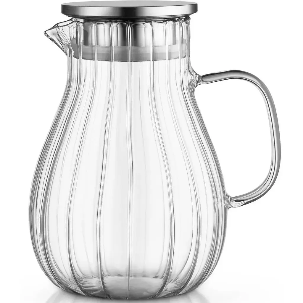 Кувшин изготовлен из высококачественного боросиликатного стекла, что обеспечивает ему исключительную прозрачность, легкость и устойчивость к температурным перепадам. Изящная форма кувшина, вместе со съемной крышкой из нержавеющей стали и ручкой с элегантным изгибом, понравится ценителям минималистского дизайна.