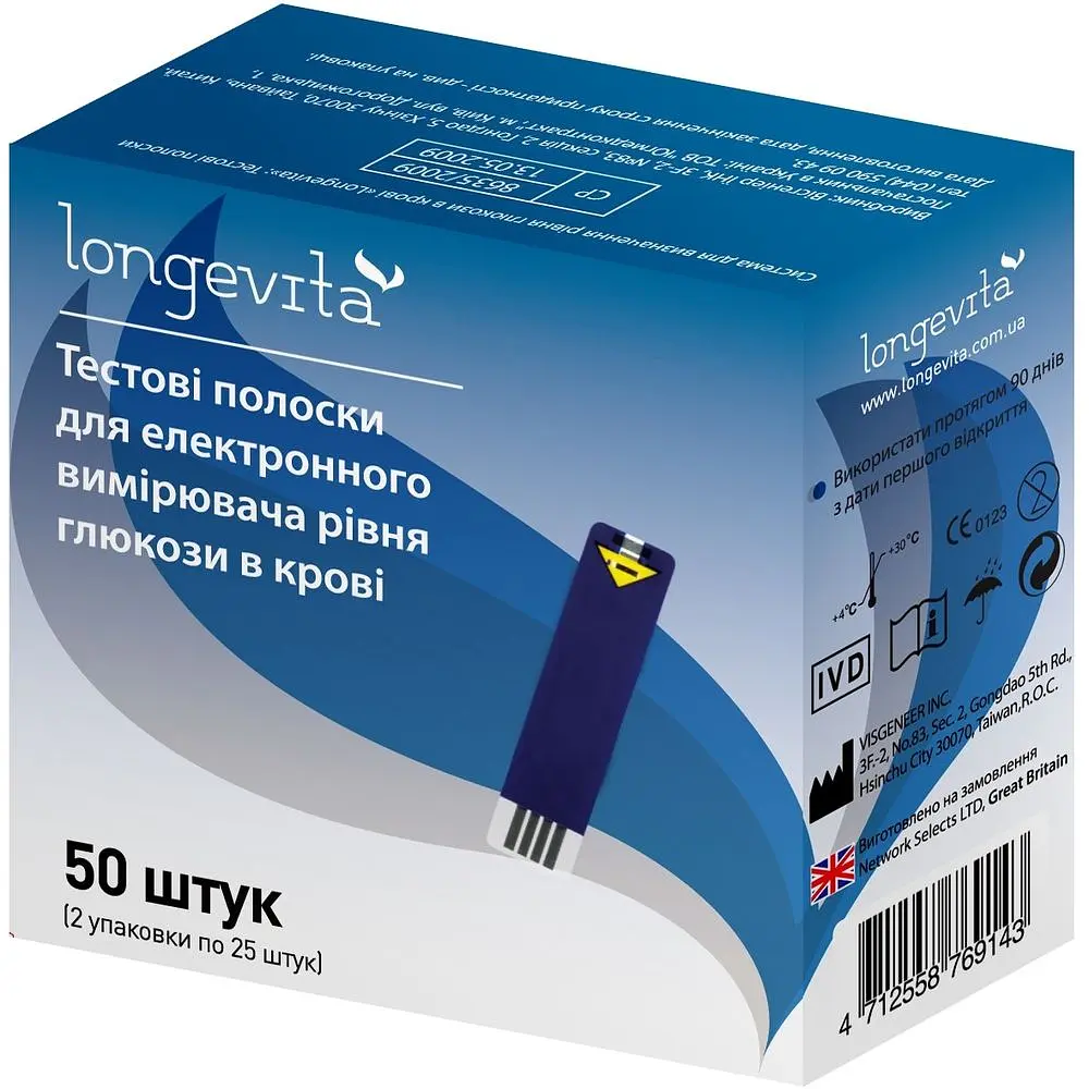 Тестовые полоски для измерения глюкозы в крови Longevita подходят для использования исключительно с глюкометром Longevita.