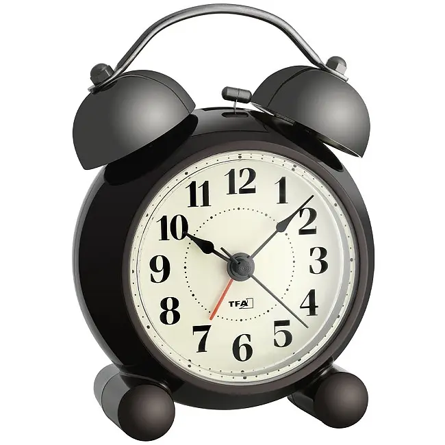 Виробник: TFA Dostmann GmbH & Co.KG, GermanyОсобливості:Аналоговий дисплейТихий механізм "Sweep"Ностальгічний ретро-дизайнБудильник з функцією повторуПодвійні дзвіночки з металуПідсвічування (натисканням на передню кришку циферблата)Механізм «Sweep»Інноваційний механізм «Sweep» зводить цокання годинника до мінімуму і працює практично без шумуЦе класичний будильник з двома дзвонами - заново винайдений. Під ностальгічною оболонкою ховаються сучасні технології. Поки ви спите, вбудований годинниковий механізм "Sweep" працює плавно і дуже тихо і не заважає під час сну. Завдяки сигналу з подвійним дзвінком, він обов'язково витягне вас з ліжка. Просто натисніть на передню кришку, якщо ви не хочете вставати відразу, і функція повтору розбудить вас через кілька хвилин. Таким же чином можна активувати підсвічування вночі. На своїх милих круглих ніжках він завжди стоїть поруч з ліжком.
