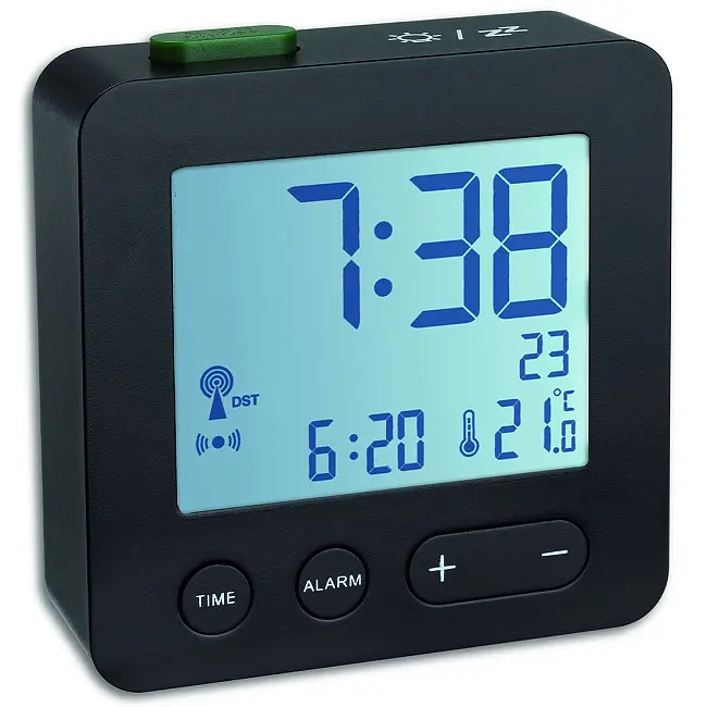 Виробник: TFA Dostmann GmbH & Co.KG, GermanyОсобливості:Індикація температури в приміщенні і датиВисокоточний радіокерований годинник (DCF77 - сигнал)Будильник з функцією повторуПідсвічування активується натисканням сенсорної клавіші