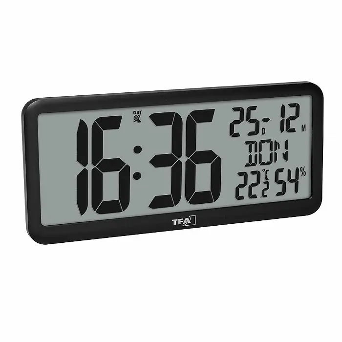 Отображение календаря: помимо времени, на большом дисплее также отображаются дата и день недели (на выбор 7 языков).