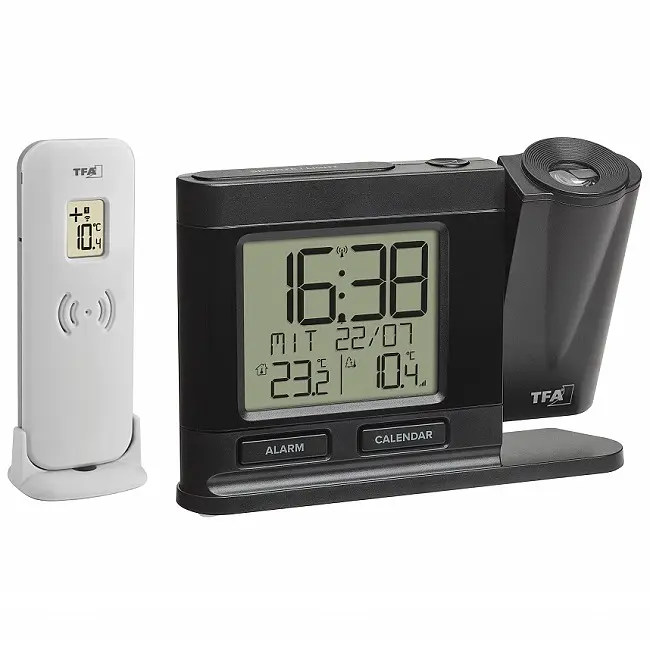 Особенности: Цифровая проекция времени, температуры в помещении или на улице или всех трех опций поочередно на стену или потолок. Индикация времени и дня недели написана полными буквами или сокращена с индикацией даты. Наружная температура через беспроводной датчик (макс. 100 м) и температура в помещении. Радиоуправляемые часы высокой точности. С часовым поясом (-12/+12 часов) и возможностью ручной настройки. Будильник с функцией повтора Подсветка с 4 уровнями яркости и регулируемая функция затемнения. Проекция с двумя уровнями яркости поворачивается на 270°. Языки будней и меню: немецкий, английский, испанский, французский. Адаптер питания в комплекте. Зарегистрированный дизайн TFA. Описание: Просто перевернитесь… Утро было бы таким расслабленным, если бы вам было легче вставать с кровати. Мы не можем вам этого обещать, но постараемся облегчить вам задачу с помощью этого проекционного будильника. По крайней мере, вы можете удобно читать время со стены или потолка вашей комнаты, лежа, и видеть, когда действительно пора вставать. Независимо от того, лучше ли вам одеть теплые носки или шорты, этот радиоуправляемый будильник также предоставит вам эту информацию благодаря небольшому беспроводному датчику, расположенному на открытом воздухе. По желанию он поочередно проецирует температуру в помещении и на улице, а также время на стену или потолок. Дисплей можно поворачивать на 270° и устанавливать два разных уровня яркости. Вы также можете самостоятельно определить интенсивность подсветки дисплея. Четыре уровня яркости и регулируемая функция затемнения делают это возможным. Хотите ли вы, чтобы вас разбудили через секунду или предпочитаете кнопку повтора: благодаря радиоприему радиоуправляемый будильник не имеет себе равных с точки зрения пунктуальности и пробуждает вас в нужное время. Кроме времени, дата и день недели также отображаются в различных избираемых форматах. Комплектация Радиоуправляемые проекционные часы, термодатчик 30.3250.02, адаптер питания, инструкция по эксплуатации. Размеры (ВхШхГ) 104 x 149 х 38 мм (проекционные часы), 129 х 48 х 26 мм (наружный датчик). Питание Батарейки 3 x 1.5 В AАА и адаптер питания (проекционные часы), 2 x 1.5 В AА (наружный датчик). Батареек нет в комплекте, адаптер питания в комплекте. Гарантия 12 мес официальной гарантии от производителя. О TFA Семейная компания TFA Dostmann GmbH & Co.KG производит погодные и измерительные приборы на собственном производственном предприятии в Райгольцхайме (возле Вертгайма, Германия) с 1964 года или производит их по всему миру. Термометры, термогигрометры, барометры и метеостанции теперь дополняются настенными часами, будильниками, таймерами, весами и многими полезными товарами для ежедневного использования. Более 1000 вдохновляющих измерительных приборов - от функциональных до ориентированных на дизайн, от вневременных до современных. TFA Dostmann является одной из ведущих компаний в этой области в Европе. Откройте для себя высококачественные инновационные продукты для всего, что касается погоды, климата в помещении и времени.