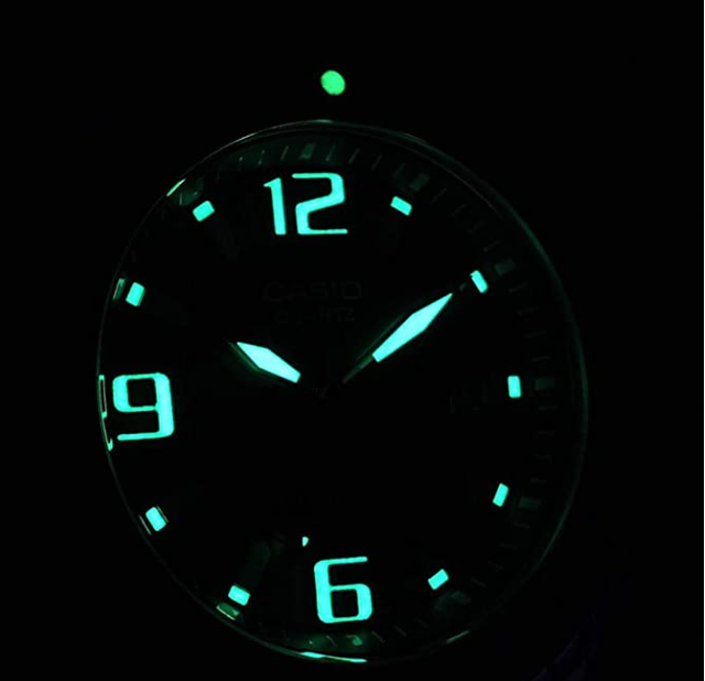 Подсветка-часы Casio MTD-1053D-1AVEF обладают аналоговой индикацией. Часовая, минутная и секундная стрелки. Стрелки и метки имеют необритовое светонакопительное покрытие. Это обеспечивает длительную подсветку в темное время суток, даже после короткого воздействия света.