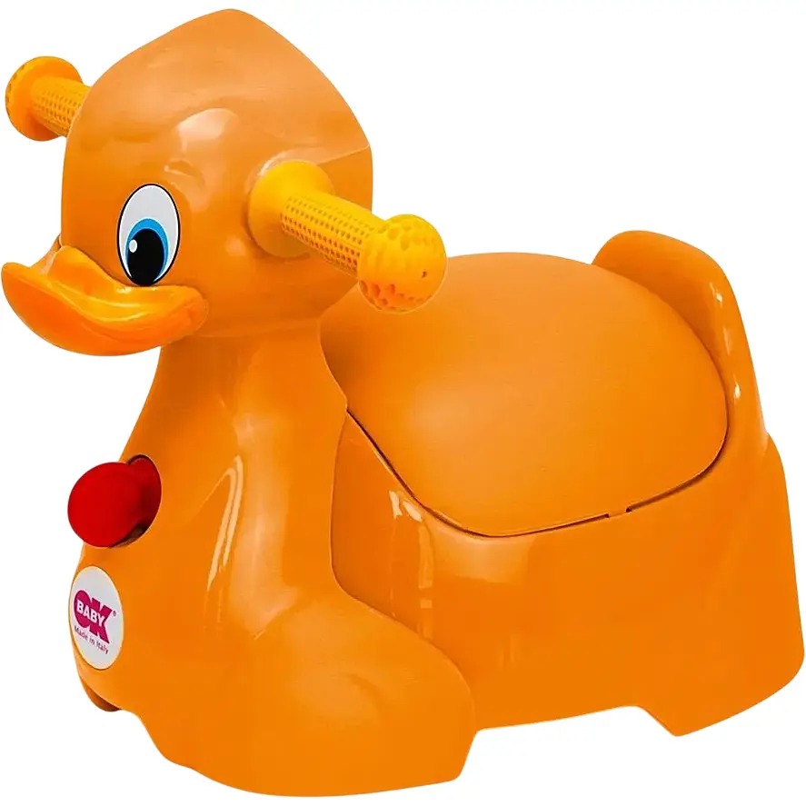 Дуже прикольний горщик, якщо потрібно привчити малюка до самостійного туалету, а він не хоче, перед такою іграшкою дитина точно не встоїть. Гарне каченя з пищалкою в дзьобику. Коли навичка сформується, голову каченяти можна від'єднати і буде класичний горщик. З переваг - кришка до горщика.
