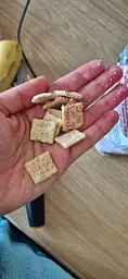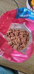 Цей сніданок дуже сподобався дитині...смачні і в сухому виді і з молоком. Гарна форма..не дуже великі...цікава упаковка. Смак полуниці відчувається..не хімічні..тому рекомендую.