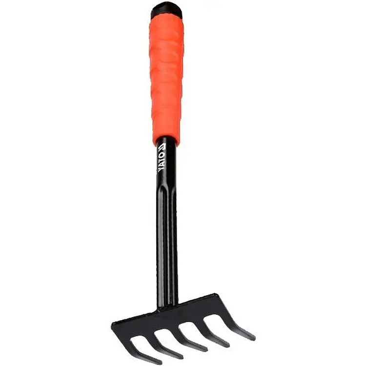 Маленькие грабли идеально подходят для мелких садовых работ. Особенно полезны для ухода за клумбами между густо растущими растениями. Рабочая часть грабель изготовлена из стали, ручка - из пластика.
