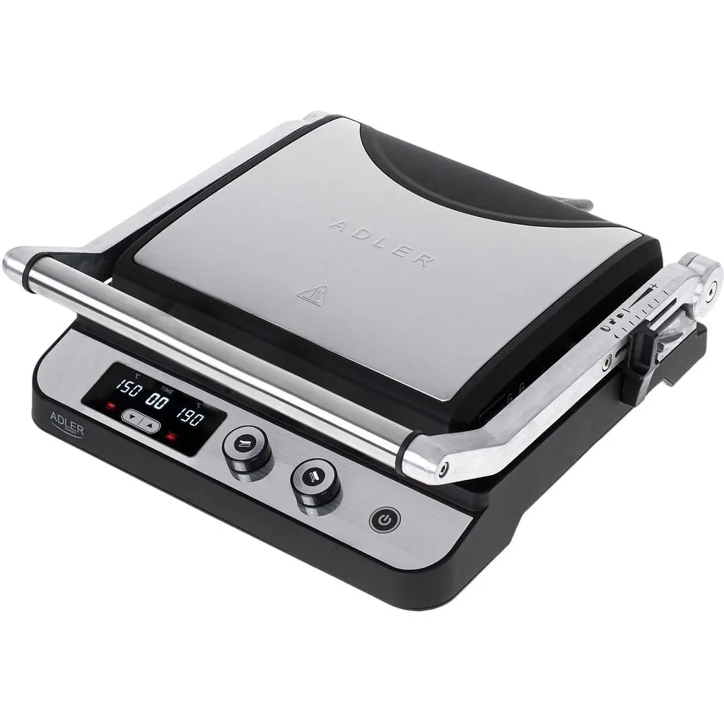 Вы можете установить температуру от 60 до 230 °C, благодаря чему можно приготовить как нежные креветки и грибы на гриле, так и колбасу или свинину. Кроме того, вы можете установить разную температуру на верхней и нижней пластинах. Это удобная функция, когда нужно приготовить одну сторону мяса. Кроме того, устройство оборудовано таймером, позволяющим установить время выпекания в диапазоне от 1 до 99 минут.