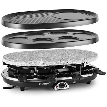 Раклет-гриль Klarstein All-U-Can Grill ваш следующий семейный вечер или следующая вечеринка станут настоящим удовольствием. Восемь человек могут вместе использовать четыре функции гриля и провести дружеский вечер, готовя и употребляя в пищу. Используйте небольшие сковородки для раклетов, чтобы комбинировать ингредиенты по своему настроению и вкусу, жарить их на нагревательных батареях мощностью до 1500 Вт и запекать со вкусным сыром. Это не только избавит вас от вопроса, чем накормить гостей, но каждый получит именно то, что ему нравится. Просто разместите на столе несколько ингредиентов, и веселье может начаться.