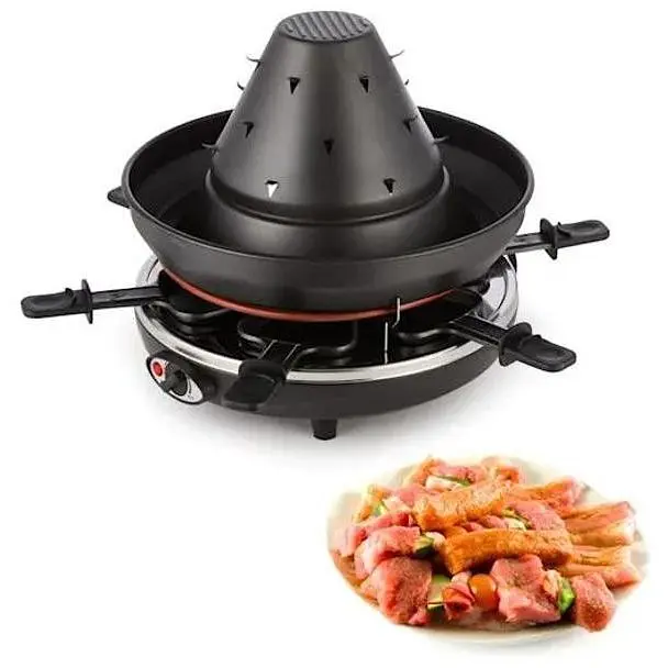 Настольный гриль Klarstein Taste Volcano 2-в-1 обнаруживает настоящие вкусовые извержения благодаря тартаровой шляпке с антипригарным покрытием. Будь то мясо, рыба, морепродукты или овощи - до 6 голодных воинов получают здесь свои деньги и могут набрасывать еду на крючки, как вздумается. Пока рожок весело шкварчит, в широких полах шляпы в собственном соке бурлят другие вкусности. Пора достать лепешку и погрузить его во вкусный бульон. Если вы не в настроении есть на гриле, вы можете поставить одну из 6 сковородок для раклета в горячую пещеру гриля для раклета Klarstein Taste Volcano. Здесь нагрев мощностью 1500 Вт радостно взрывается и превращает сыр в вкусное кремовое блюдо с золотистой корочкой. Конечно, вы можете создавать много альтернатив и совмещать их с мясом, овощами или даже фруктами; ваше воображение ограничено только предлагаемыми ингредиентами.