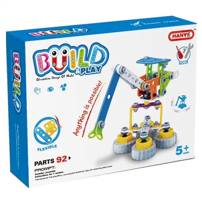 Конструктор детский BuildandPlay Портовый кран 92 эл. (J-7701) - яркий и красочный набор для сборки портового крана по инструкции в комплекте. Помимо складывания заданных по инструкции моделей, вы можете конструировать собственные проекты - модели автомобилей, самолетов, роботов и другой техники. Гибкий конструктор BuildandPlay состоит из больших красочных деталей, которые крепятся между собой при помощи болтов. Элементы легко соединять между собой. Так же в наборе есть гаечный ключ и отвертка для развития навыков начинающего инженера. Некоторые элементы конструктора BuildandPlay изготовлены из гибкого пластика, который гнется, но при этом отлично держит форму, приятный на ощупь и безопасен для детей. Играя с конструктором BuildandPlay ребенок развивает мелкую моторику, воображение, внимательность, терпение, логическое и пространственное мышление. Размер упаковки: 23х8х30 см.