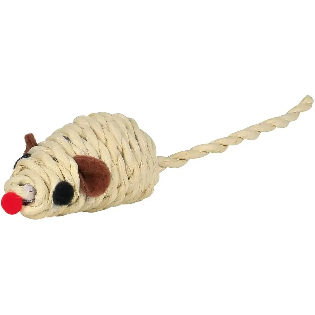Подобається, що з надійного канату, коти її гризуть і забавно носять в зубах по всій хаті, ще допомогло відволікти увагу від проводів які вони раніше гризли, тепер "страждає" мишка