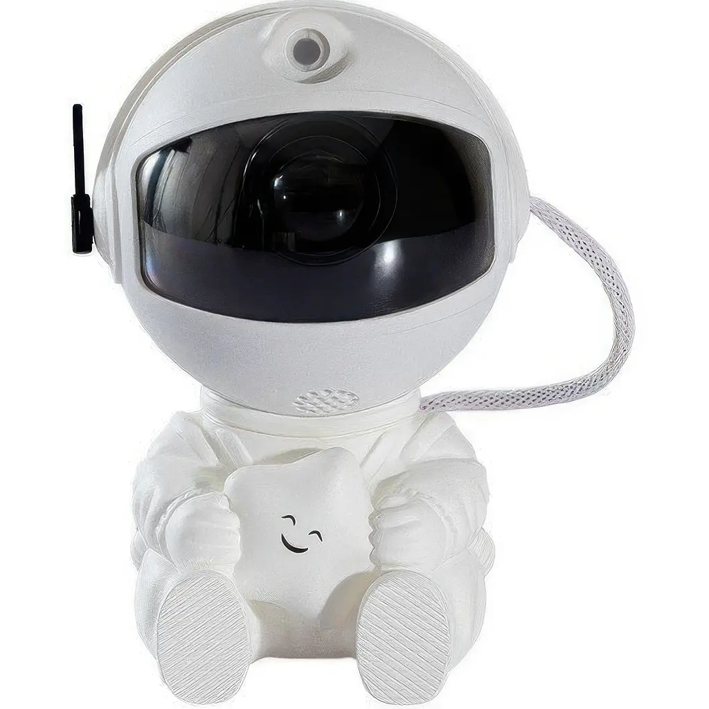 Этот проектор имеет форму астронавта, который надевает на себя скафандр и отправляется в космическое путешествие. Он производит разноцветные лазерные лучи, которые создают на потолке и стенах красивые картины космических объектов, таких как звезды, планеты, галактики и туманности.