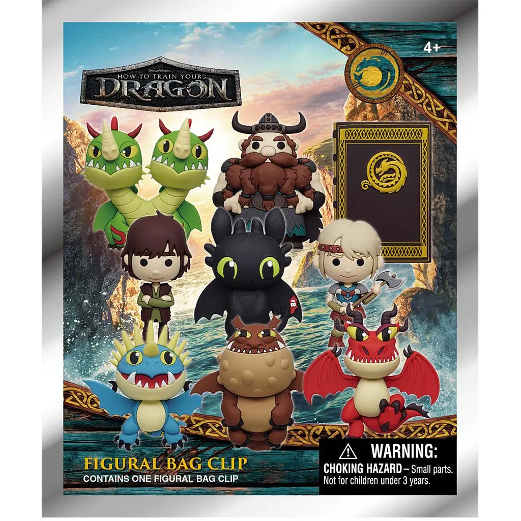В ассортименте 11 главных героев из которых 2 редких: Беззубик, Иинг, Астрид, Брунгильда, Сарделька, Иклогак, Стоик, Забияка и Задирака, Книга драконов, Логотип с драконом (редкий) и Милый Беззубик (род.