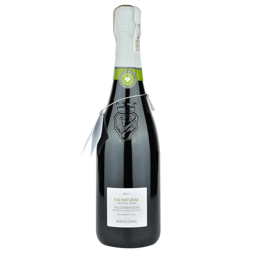 Игристое вино Bortolomiol (Бортоломиол) Ius Naturae Valdobbiadene изготовлено из органического винограда. Виноградники расположены в гористой местности, поэтому плоды для вина собираются вручную.