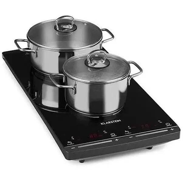 На индукционных варочных поверхностях есть место для 2 кастрюль или сковород, которыми можно удобно управлять отдельно с помощью сенсорной поверхности на передней части плиты. Мощность можно регулировать на сенсорной панели в 10 уровнях от 200-1300 Вт, температуру можно установить шагами от 60-240 °C и таймер от 1 до 80 минут. Операция интуитивно понятна и проста, поскольку она была ограничена самым необходимым.