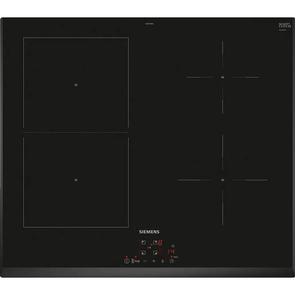 Siemens ED651BSB6E заботится о вашей безопасности: индикатор остаточного тепла предупреждает о горячих зонах, а блокировка от детей исключает случайное включение. Функции QuickStart и ReStart делают использование более удобным, позволяя мгновенно возвращаться к приготовлению.