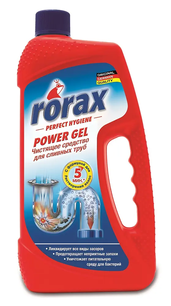 Гель для сливных труб Rorax - это интенсивное средство для прочистки труб, которое эффективно устраняет засоры, уничтожая при этом бактерии и неприятные запахи. Сльный состав легко растворяет волосы и жиросодержащие засоры.