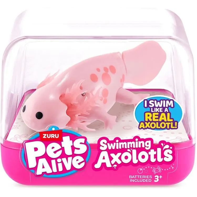 Опустите игрушку в воду, и аксолотль сразу же поплывет!