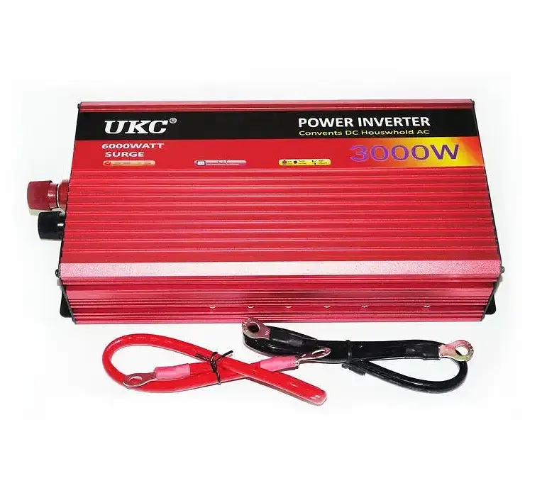 Инвертор UKC 3000W адаптирует 12 V автомобильного аккумулятора до 220 V для различных электронных приборов, таких как MP3-плеер, мобильный телефон, ноутбук, аварийное освещение, электрический вентилятор, электрическое одеяло, электробритвы, цифровые камеры, TV, CD, DVD, пылесос, холодильник, электрический. Преобразователь позволяет подключать нагрузку до 1500 Вт.