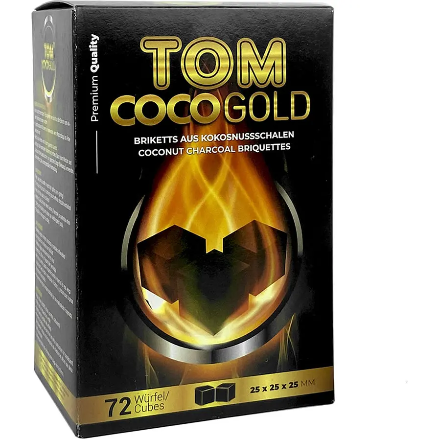 Кокосовый уголь для кальяна Tom COCO (Cococha) Gold 1кг – кокосовый уголь немецкой компании Tom Coco, произведён в Индонезии. При использовании не имеет посторонний запах, быстро разжигается и уверенно держит температуру до 50-60 минут. Светлый пепел говорит о натуральности продукта, легко сбивается. В упаковке 72 кубика размером 25х25х25мм. Используя Калауд для комфортного использования достаточно 2 кубика данного размера.
