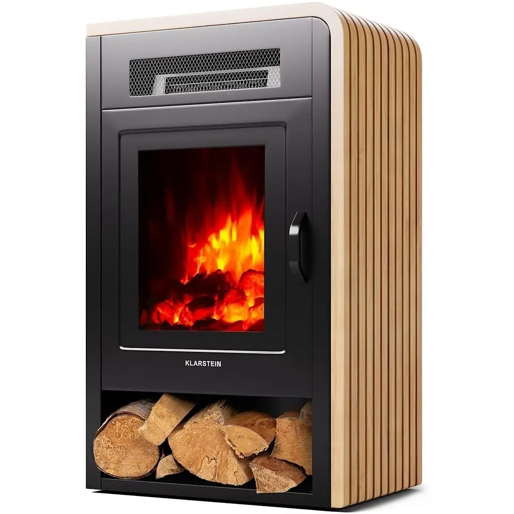 Классический дизайн камина Klarstein поражает своей простотой и элегантностью. Особой изюминкой кроме интеллектуального управления является декоративное хранилище для поленьев в основе камина.