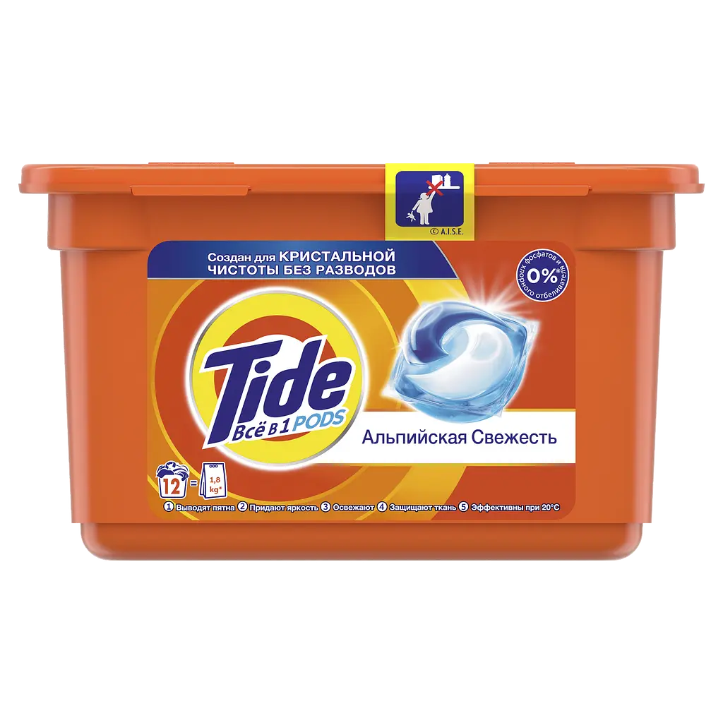 Капсулы для стирки Tide (Тайд) Все-в-1 Альпийская свежесть настолько просты в использовании, что стиркой можно заниматься буквально "одной левой" и при этом быть уверенным в великолепном результате уже через несколько минут.