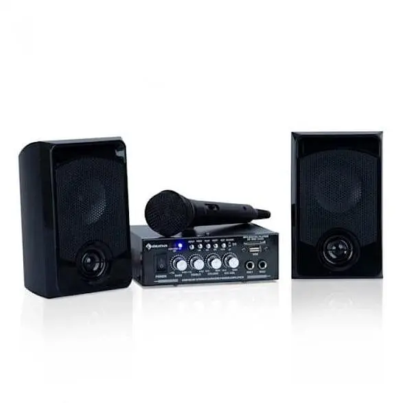 Караоке система Auna Karaoke Star 1 - универсальное устройство, которое включает в себя все необходимое: усилитель с 2 микрофонными входами, два микрофона и две колонки. Также, есть возможность подключения к видео и аудио-носителям. Все это обеспечивает сильный звук со стабильным качеством.