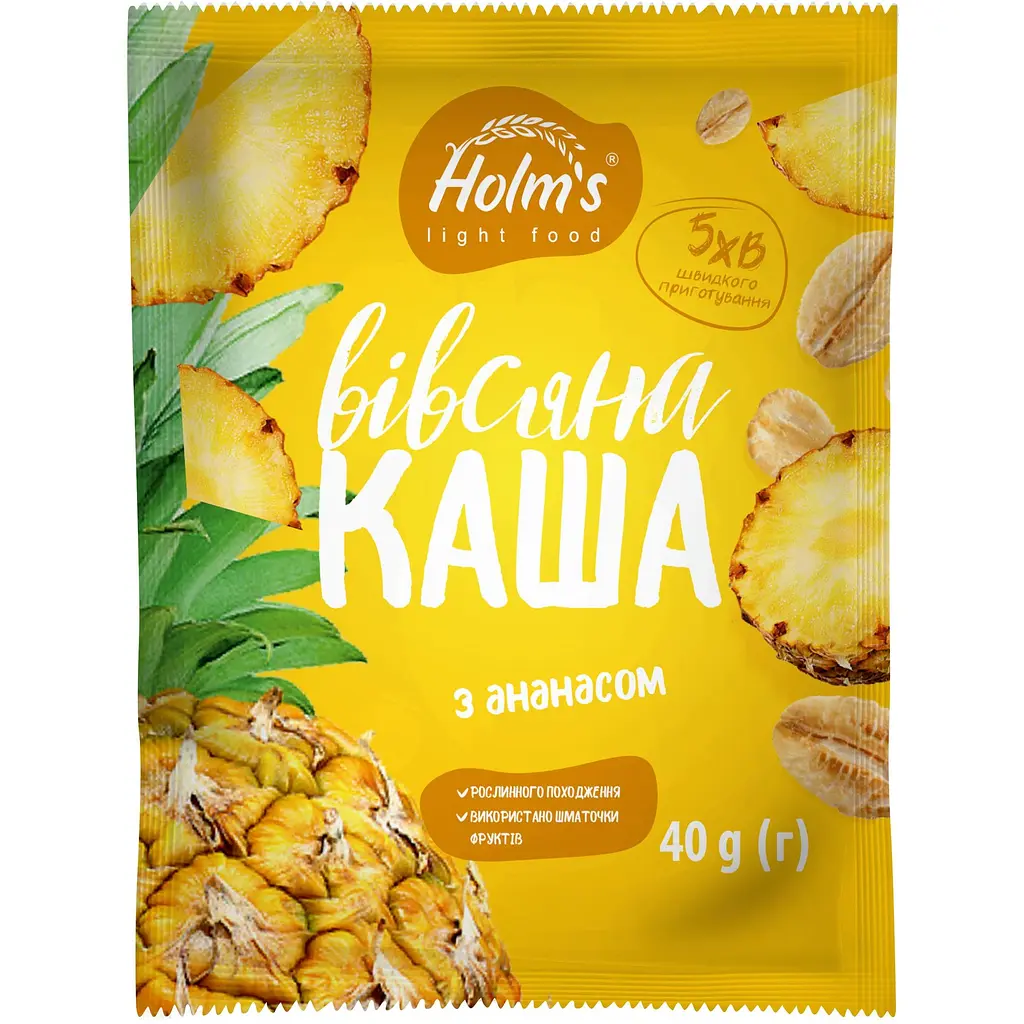 Каша овсяная с ананасом, 40 г - питательная и яркая каша из овсяных хлопьев с сочным ананасом. Быстро готовится, дарит энергию и заряд витаминов на весь день. Идеальна для завтрака или перекуса. Полезно, вкусно и естественно в каждой ложке.