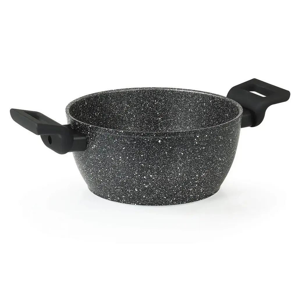 Утолщенные стенки и многослойное дно открывают пространство для большинства процессов приготовления, включая тушение, томление, запекание, пассерование и т.д. Феромагнитное дно делает кастрюлю подходящей для любой нагревательной поверхности, включая индукционные плиты. Алюминиевый ободок по периметру кастрюли делает ее более выносливой к ударам и способствует удержанию первичной формы даже при длительном использовании. Удобные бакеловые ручки не нагреваются во время приготовления. Наружное антипригарное покрытие делает уход за кастрюлей легким и быстрым.