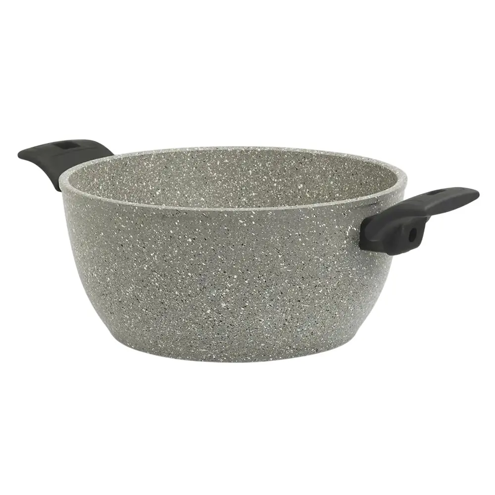Камень – самый старый материал, который сегодня снова оживает в новых формах, чтобы служить тем, кто ценит совершенство природы на кухне. На самом деле именно из камня компания Flonal черпает свое вдохновение для создания Monolite: наиболее технологичной коллекции производителя, которая предлагает самое эффективное антипригарное покрытие Magma-Tech Plus на основе твердых минеральных частиц вместе с алюминиевой основой толщиной 6 мм. Кроме того, ферромагнитное дно делает кастрюлю пригодной для любой нагревательной поверхности, включая индукционные плиты. Наружное антипригарное покрытие делает уход за кастрюлей легким и быстрым. Бакелитовые ручки не нагреваются во время приготовления.