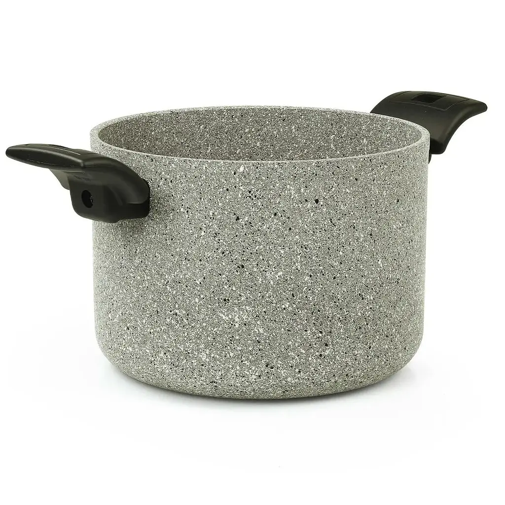 Камень – самый старый материал, который сегодня снова оживает в новых формах, чтобы служить тем, кто ценит совершенство природы на кухне. На самом деле именно из камня компания Flonal черпает свое вдохновение для создания Monolite: наиболее технологичной коллекции производителя, которая предлагает самое эффективное антипригарное покрытие Magma-Tech Plus на основе твердых минеральных частиц вместе с алюминиевой основой толщиной 6 мм. Кроме того, ферромагнитное дно делает кастрюлю пригодной для любой нагревательной поверхности, включая индукционные плиты. Наружное антипригарное покрытие делает уход за кастрюлей легким и быстрым. Бакелитовые ручки не нагреваются во время приготовления.