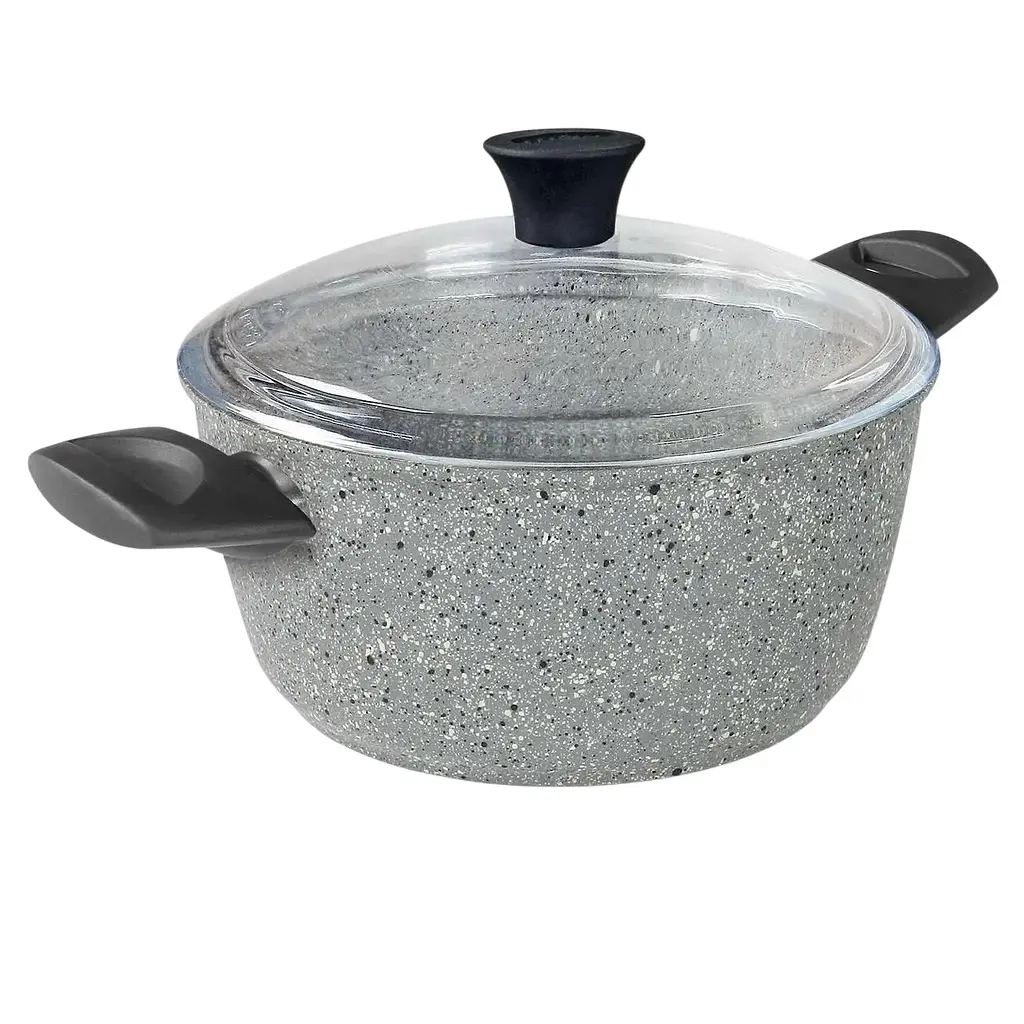 Кастрюля комплектуется высококачественной крышкой Pyrex из жаростойкого боросиликатного стекла. Феромагнитное дно делает кастрюлю подходящей для любой нагревательной поверхности, включая индукционные плиты. Толстый алюминиевый ободок по периметру кастрюли делает ее более выносливой к ударам, способствует удержанию первичной формы даже при длительном использовании и позволяет крышкам плотнее прилегать к кастрюле. Удобные бакелитовые ручки не нагреваются во время приготовления. Наружное антипригарное покрытие облегчает и ускоряет уход за кастрюлей.