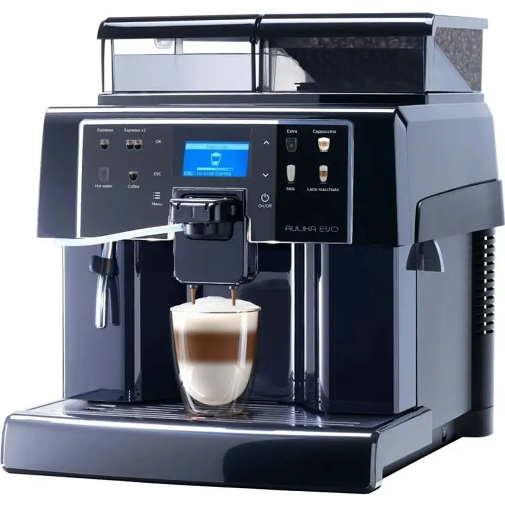 Автоматическая кофемашина Saeco Aulika Evo Focus - это профессиональное решение для офисов, кафе и небольших заведений формата HoReCa, где важны стабильное качество напитков, высокая производительность и простота обслуживания. Модель выполнена в стильном черном корпусе и оснащена сенсорной панелью управления с подсветкой и фотореалистичными иконками, что делает выбор напитков максимально удобным и интуитивно понятным.