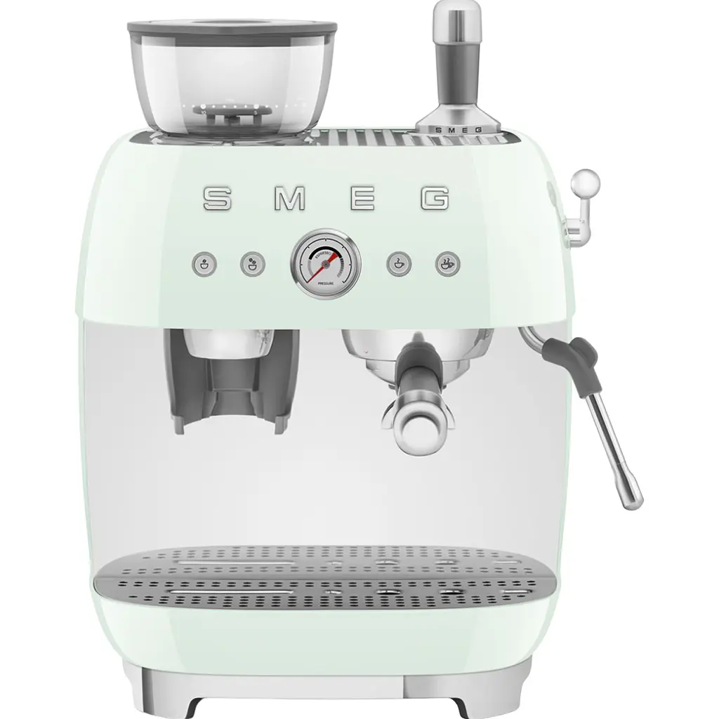 Smeg EGF03 оснащена 58 мм портафильтром, который гарантирует высококачественные результаты каждый раз. Благодаря профессиональному паровому капучинатору с двумя уровнями интенсивности пара, вы легко сможете создавать идеальную пенку для капучино, латте или других молочных напитков, как настоящий бариста.