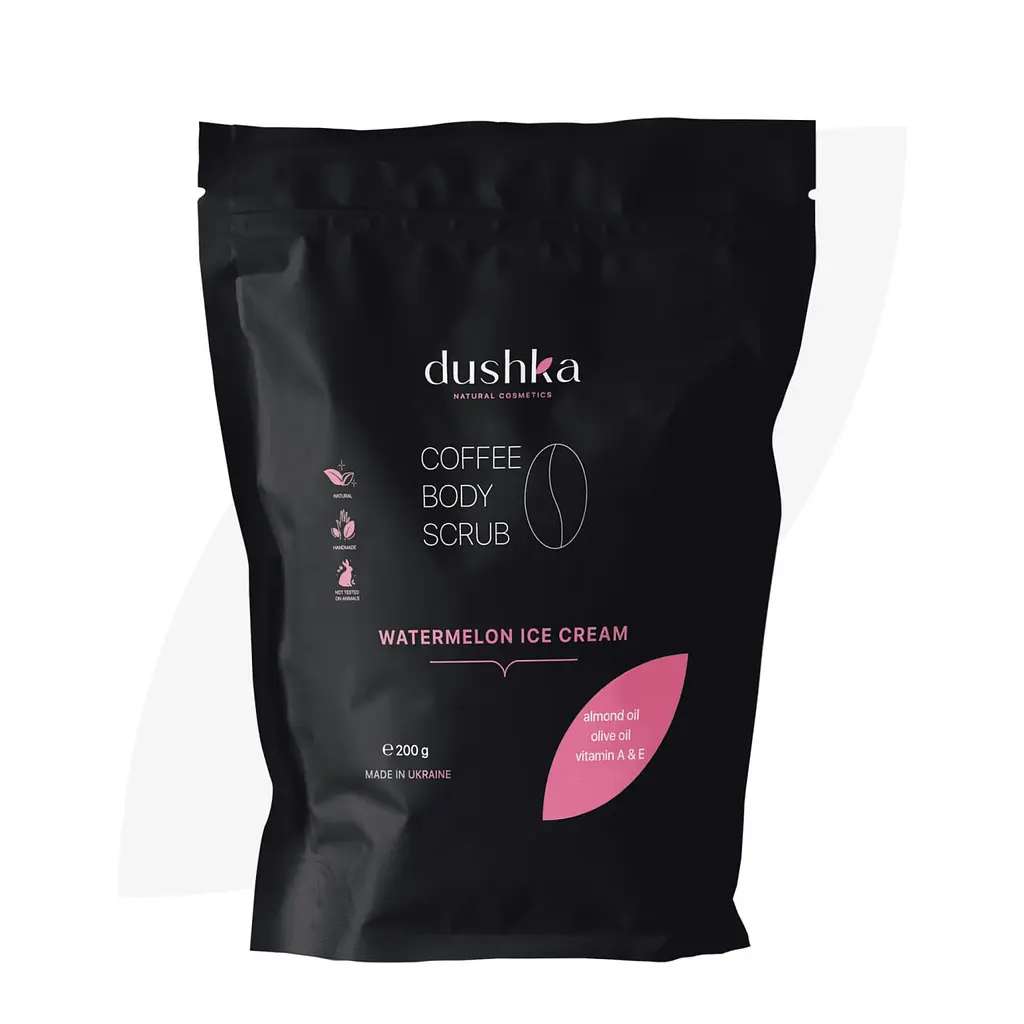 Тот самый летний аромат в твоей ванной в любое время года! Кофейный скраб с арбузом от Dushka тщательно отшелушивает ороговевшие клетки эпидермиса с помощью сахара, соли и молотого кофе. А масла оливы и миндальной косточки питают и увлажняют кожу.